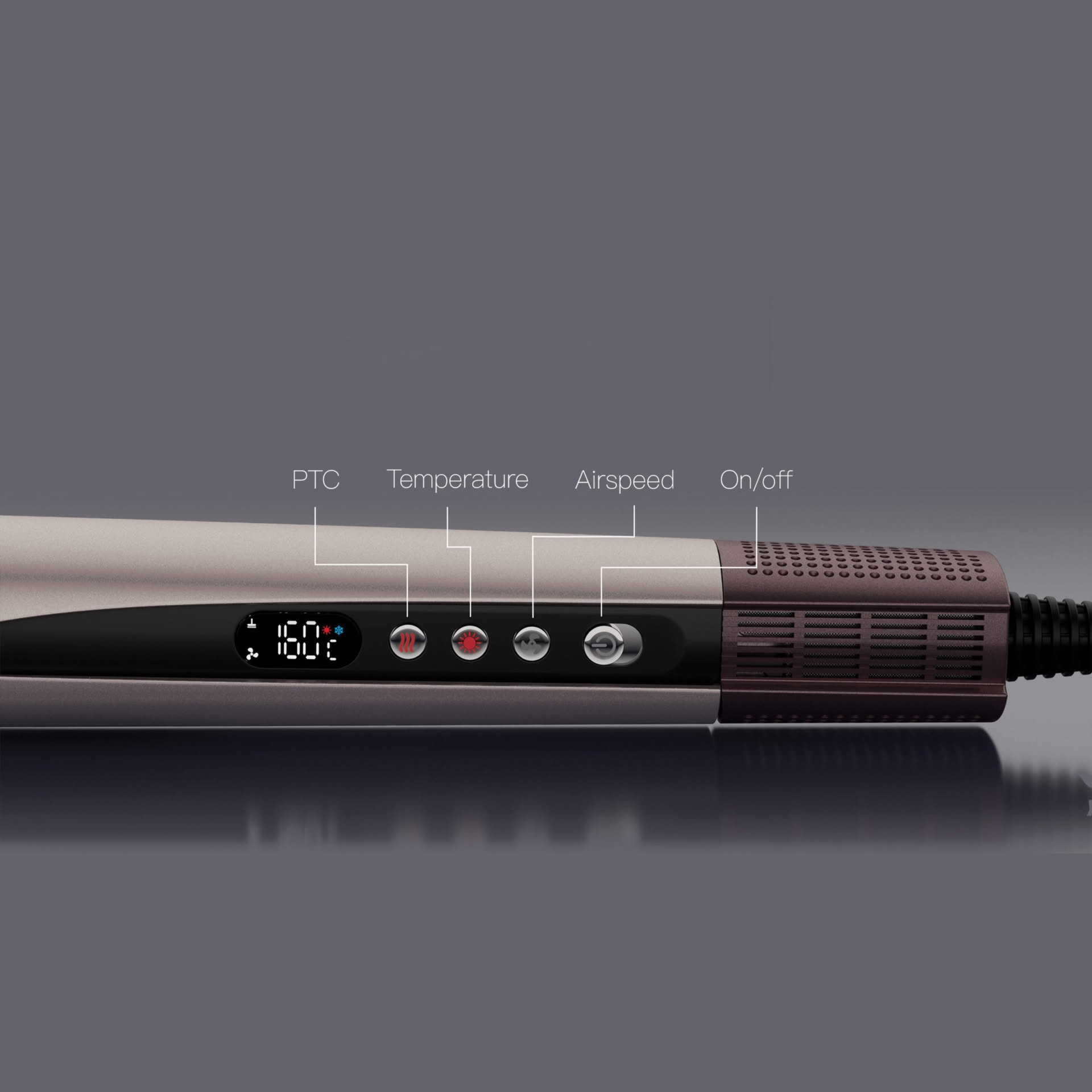 5 air temperature settings: Cold, 60°C, 90°C, 120°C, 160°C.